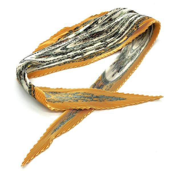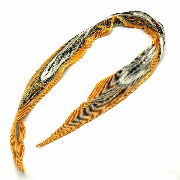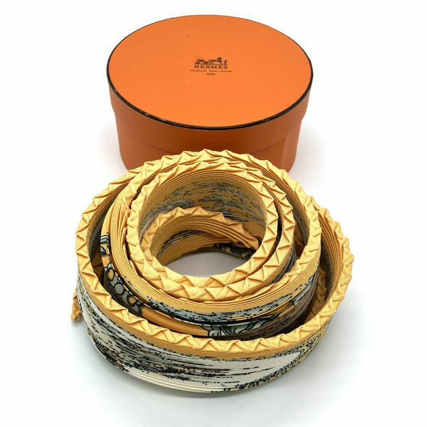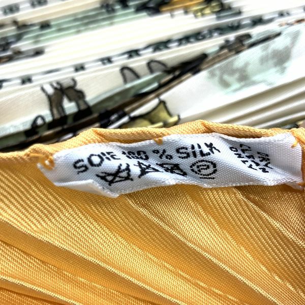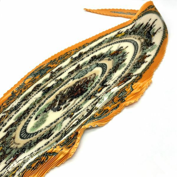 3. エルメス HERMES プリーツ カレ90 ロンシャンへの散歩 スカーフ シルク 132.5cm オレンジ レディース【中古】