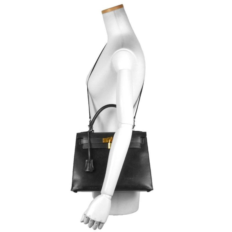 3. エルメス HERMES ケリー28 ハンドバッグ 2WAY ボックスカーフ 〇V刻印(1992年製造)刻印 ブラック ゴールド金具【中古】