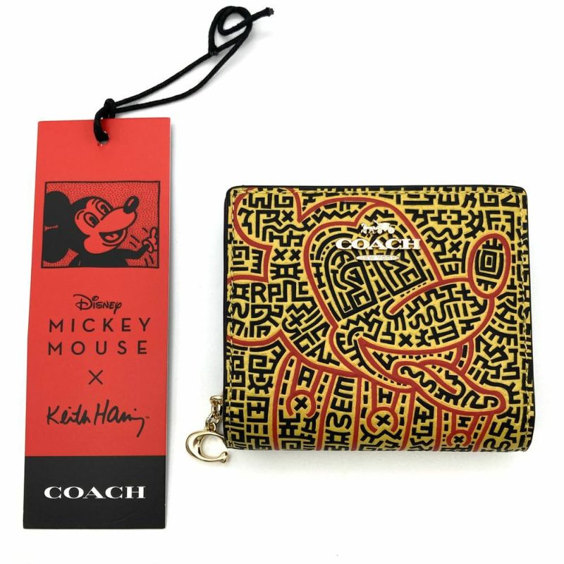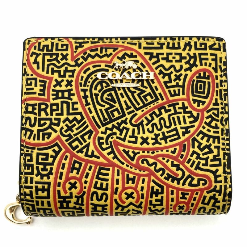 5. コーチ COACH ディズニー キース ヘリング ミッキーマウス 二つ折り財布 レザー C7446 イエロー【中古】
