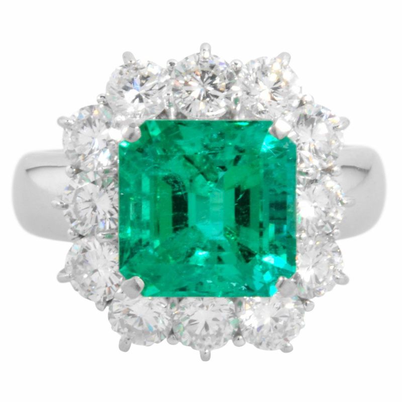 3. リング 指輪 エメラルド 5.03ct 約15.5号 Pt900 17.1g プラチナ ダイヤモンド レディース【中古】