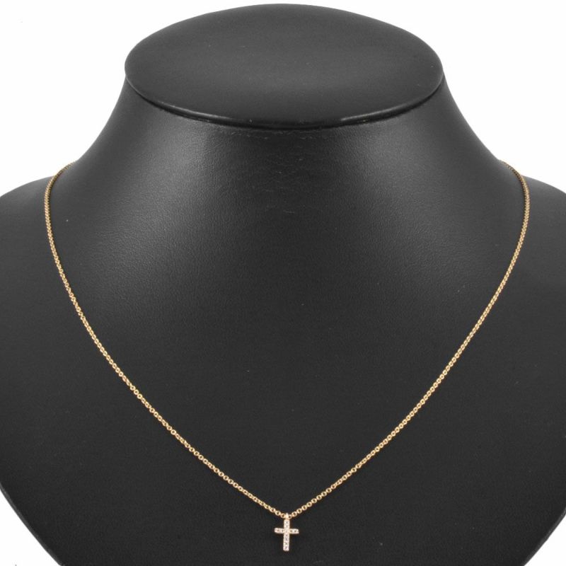 3. ティファニー Tiffany&Co. メトロ クロス ミニ ネックレス ダイヤモンド K18PG 2.0g ローズゴールド レディース【中古】