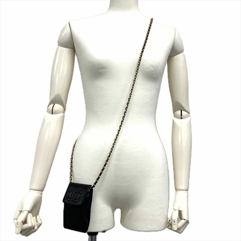 シャネル CHANEL ココマーク シガレットケース ショルダーバッグ キャビアスキン ブラック ゴールド金具【中古】