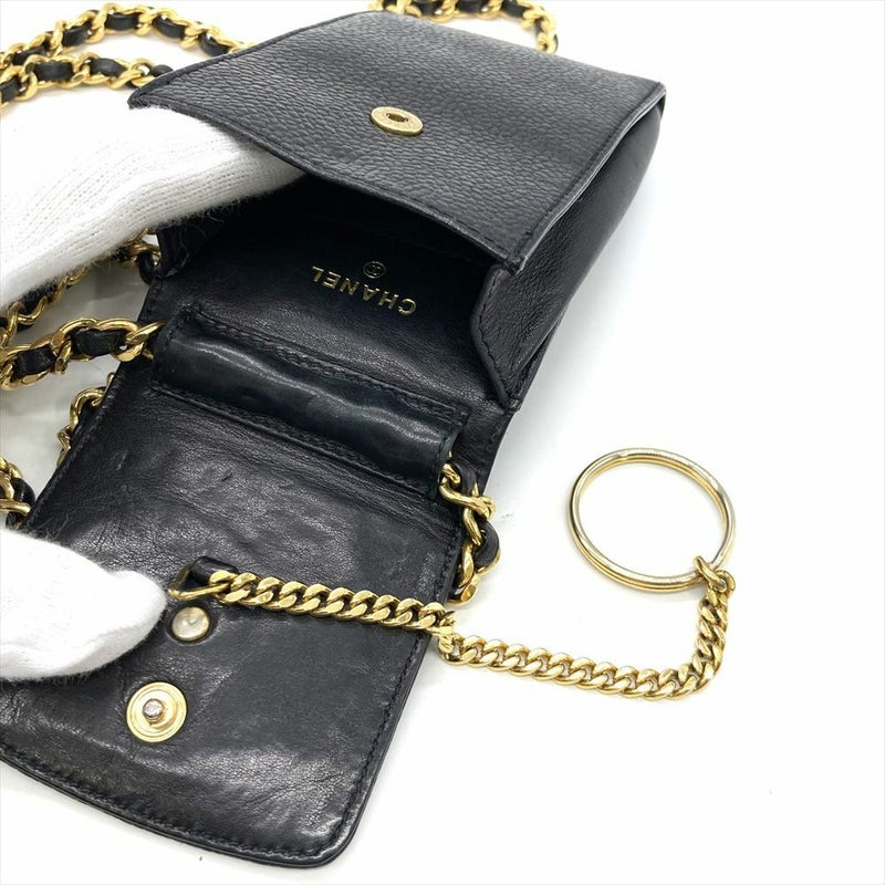 4. シャネル CHANEL ココマーク シガレットケース ショルダーバッグ キャビアスキン ブラック ゴールド金具【中古】