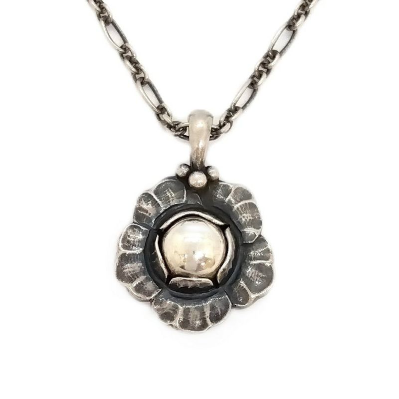 4. ジョージジェンセン Georg Jensen 2002 イヤーペンダント ネックレス SV925 シルバー ヘリテージ フラワー 花 デンマーク レディース【中古】