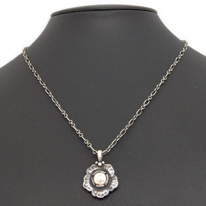 5. ジョージジェンセン Georg Jensen 2002 イヤーペンダント ネックレス SV925 シルバー ヘリテージ フラワー 花 デンマーク レディース【中古】