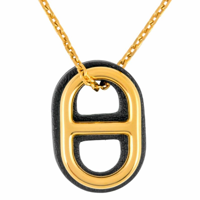 3. エルメス HERMES シェーヌダンクル オーマイヨン ネックレス GP レザー ゴールド金具 50.5cm 4.5g レディース【中古】
