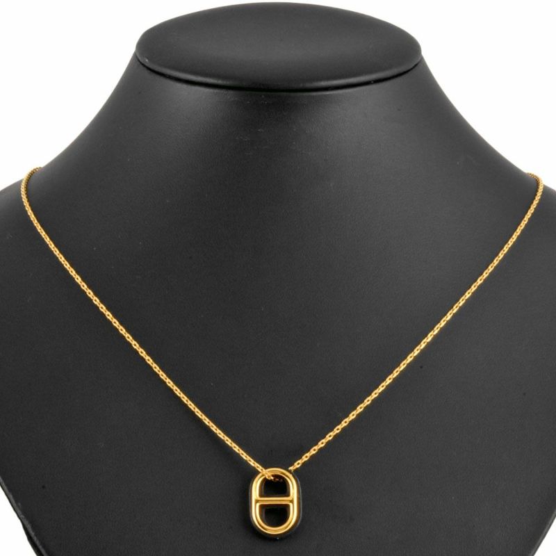 5. エルメス HERMES シェーヌダンクル オーマイヨン ネックレス GP レザー ゴールド金具 50.5cm 4.5g レディース【中古】