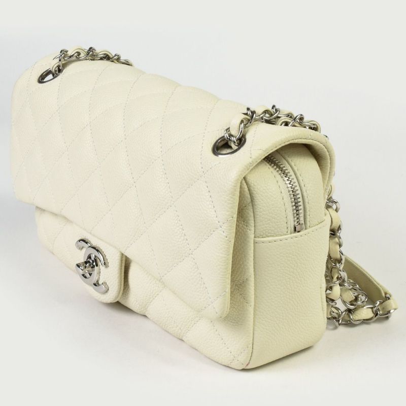 3. シャネル CHANEL マトラッセ ショルダーバッグ キャビアスキン オフホワイト シルバー金具 8桁 20番台(2014年製造)【中古】