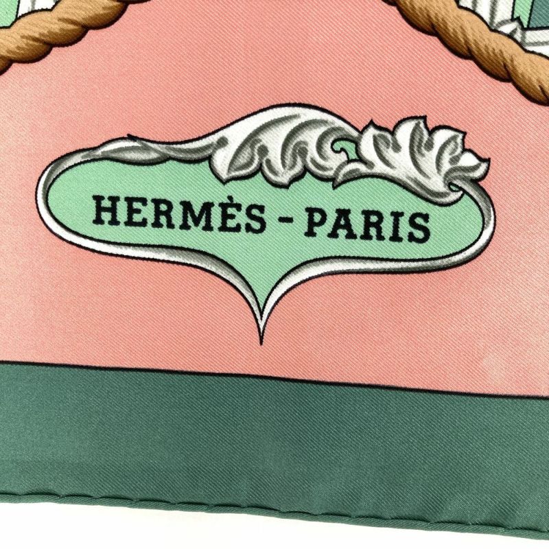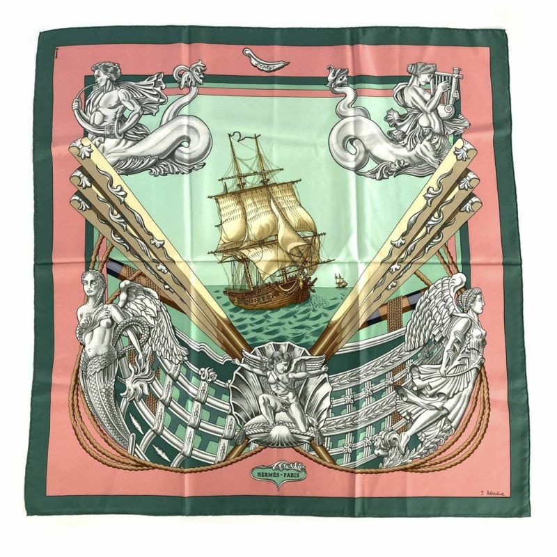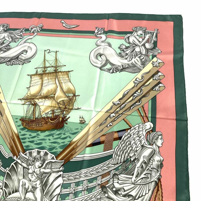 3. エルメス HERMES カレ90 Lephyr 帆船 スカーフ シルク グリーン【中古】