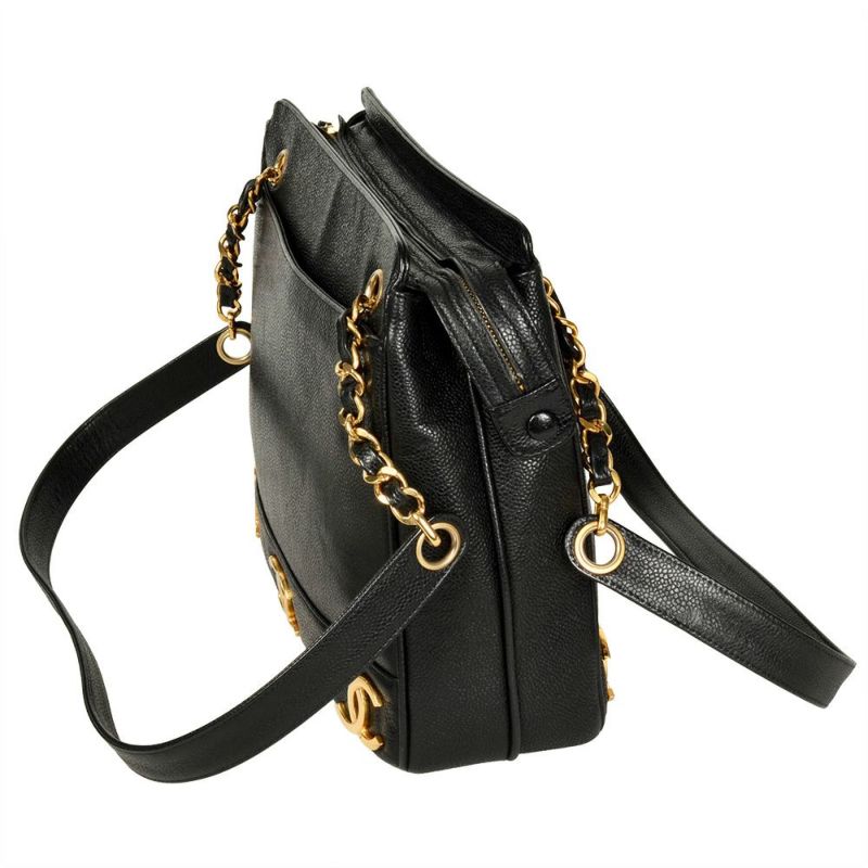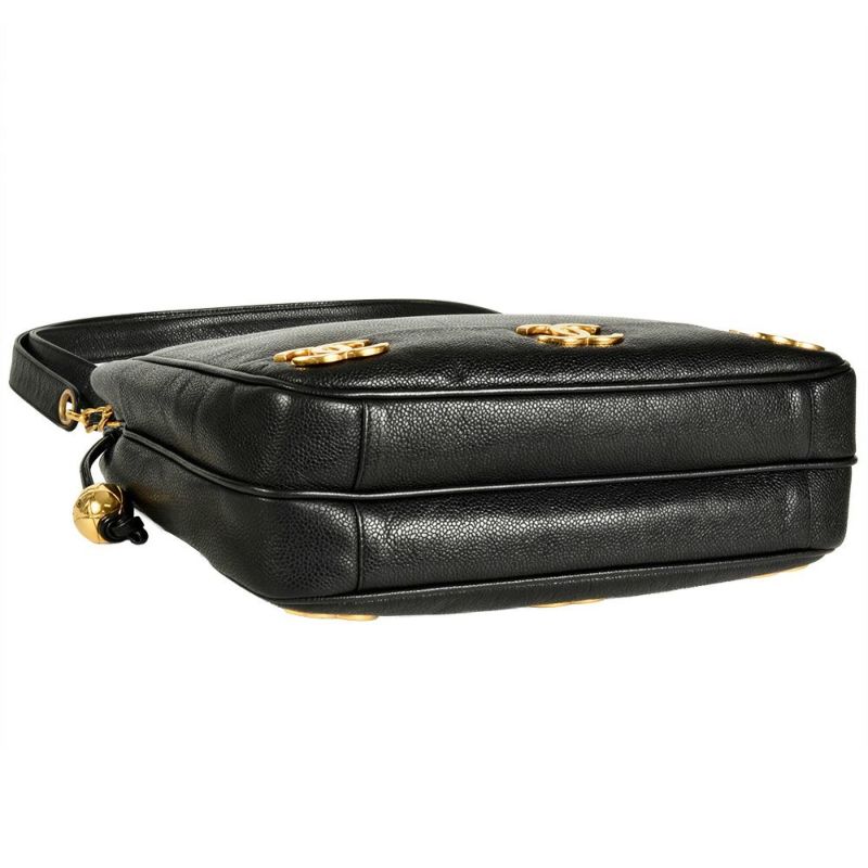5. シャネル CHANEL トリプルココ チェーン ショルダーバッグ キャビアスキン ブラック ゴールド金具 7桁4番台【中古】