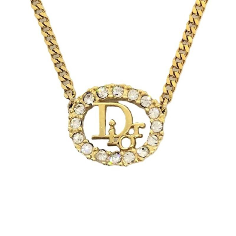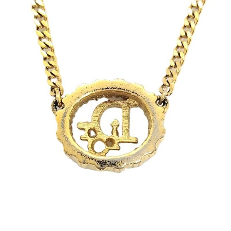 3. クリスチャンディオール Christian Dior オーバルDiorロゴ ラインストーン GP ネックレス ゴールド GERMANY【中古】