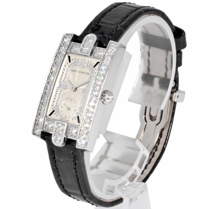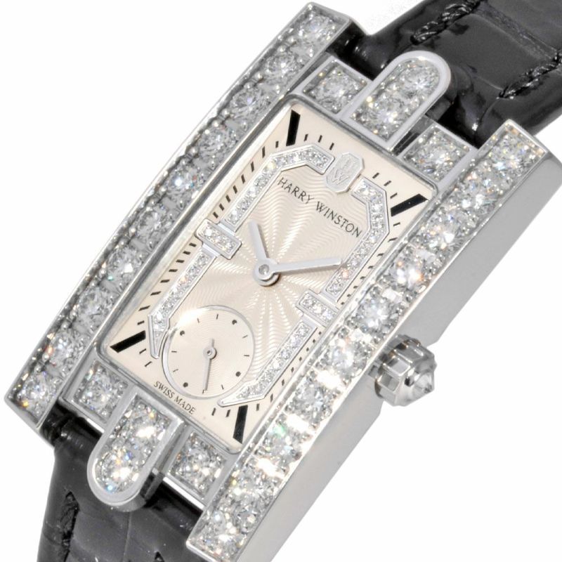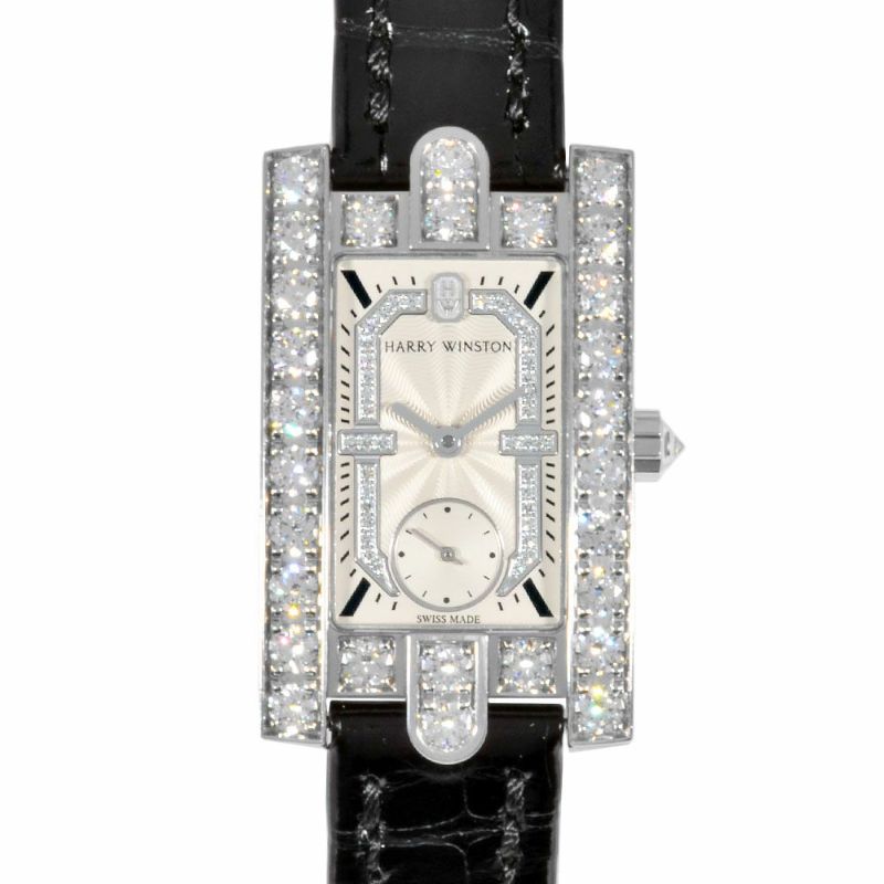 - ハリーウィンストン HARRY WINSTON AVEQHM21WW283 アベニュー クラシック ダイヤベゼル 腕時計 シルバー文字盤 金無垢 K18WG レディース【中古】