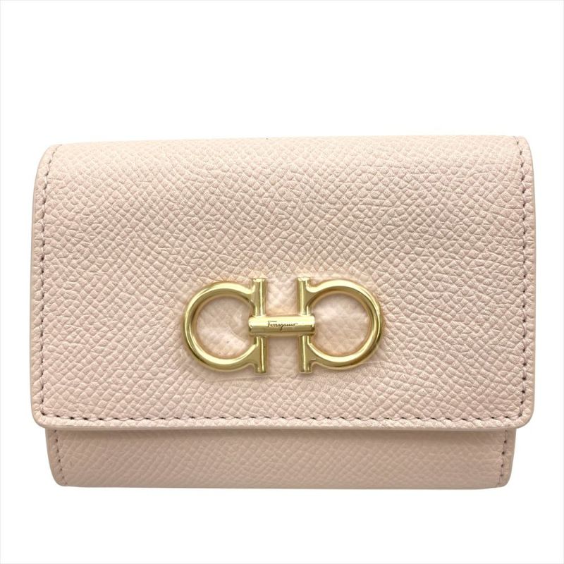 フェラガモ Ferragamo ガンチーニ 三つ折り財布 レザー 200862 ピンク コンパクト【中古】