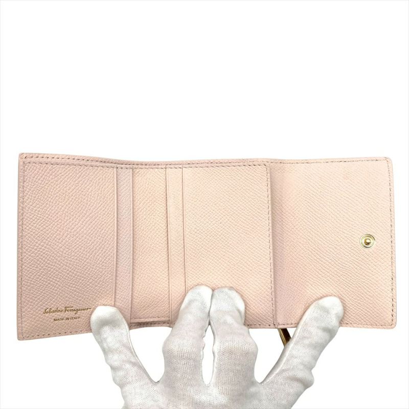 4. フェラガモ Ferragamo ガンチーニ 三つ折り財布 レザー 200862 ピンク コンパクト【中古】