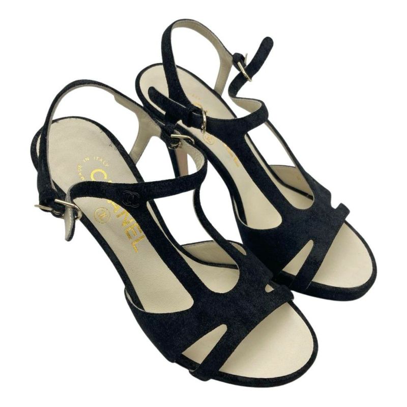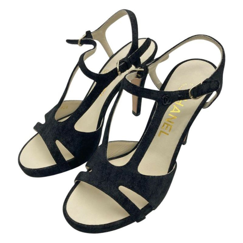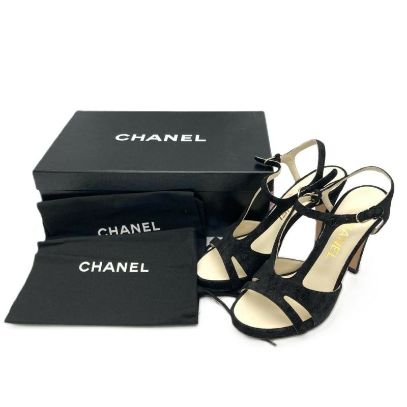 シャネル CHANEL ココマーク バックストラップ ヒール サンダル スウェード G28928 ブラック レディース【中古】