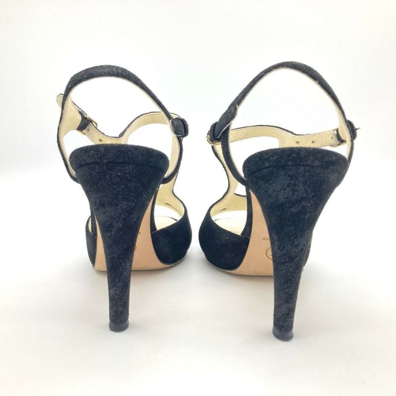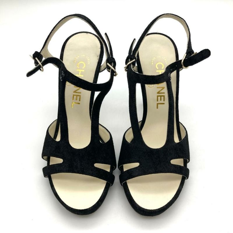 4. シャネル CHANEL ココマーク バックストラップ ヒール サンダル スウェード G28928 ブラック レディース【中古】