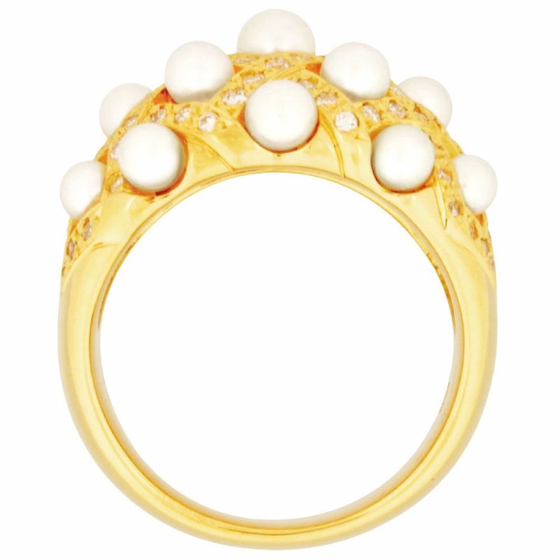 3. リング 指輪 ダイヤモンド 0.63ct 約14号 K18YG 11.8g ベビーパール 3.4~4mm珠 レディース【中古】