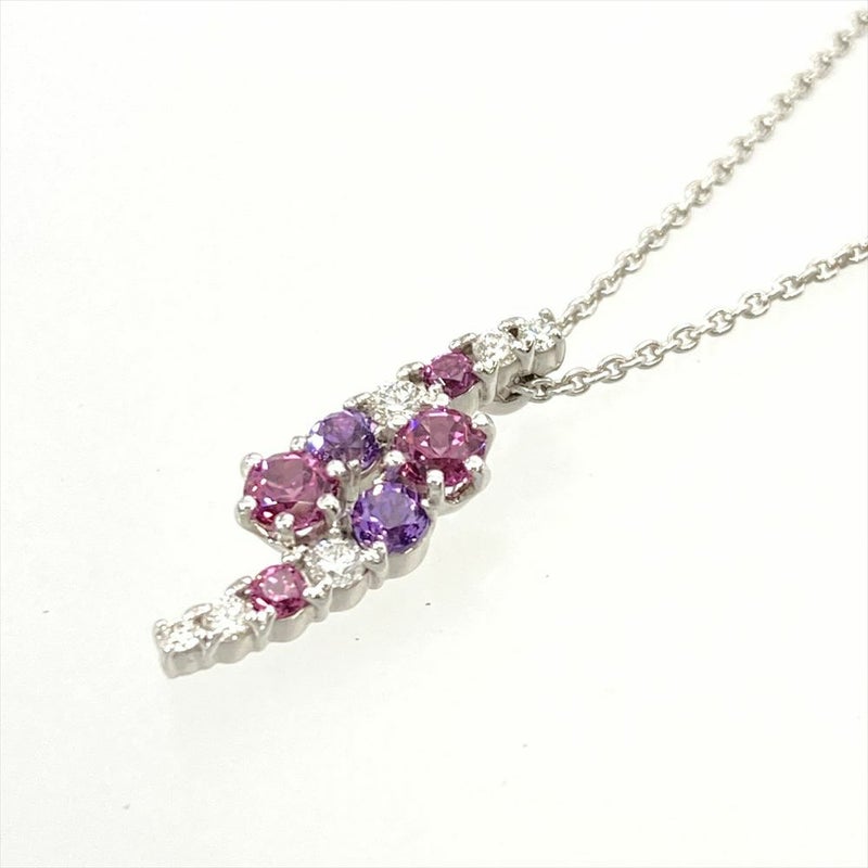 ニナリッチ NINA RICCI マルチカラー ネックレス ダイヤモンド 0.10ct K18WG 3.3g ホワイトゴールド アメジスト トルマリン レディース【中古】