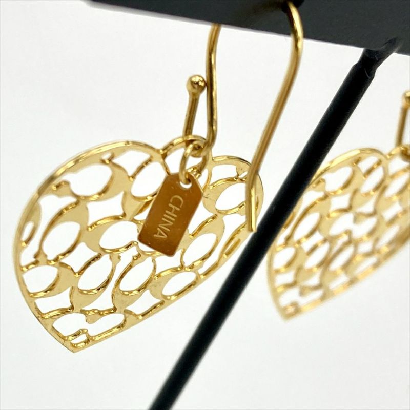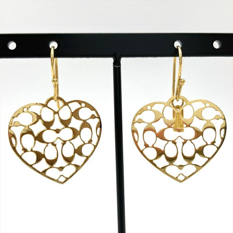 3. コーチ COACH ハート メッキ ピアス ゴールド レディース【中古】