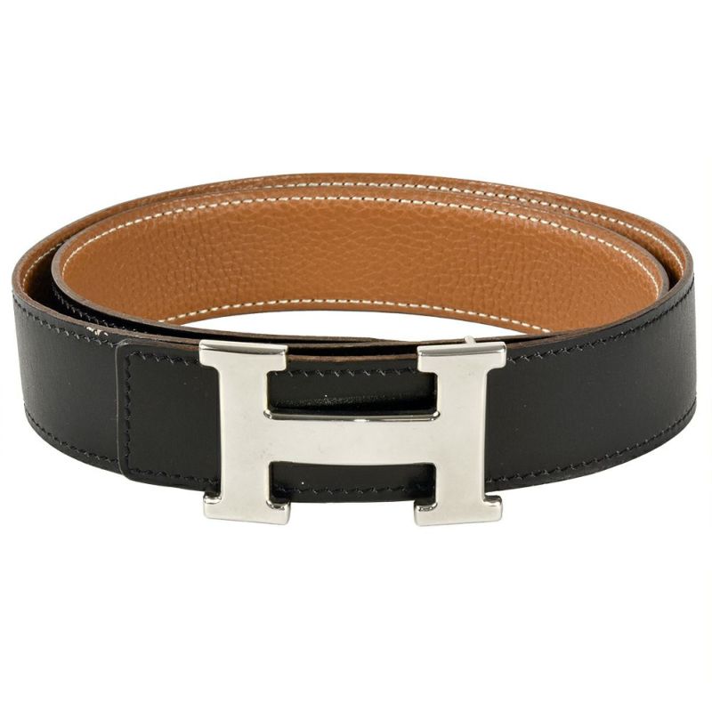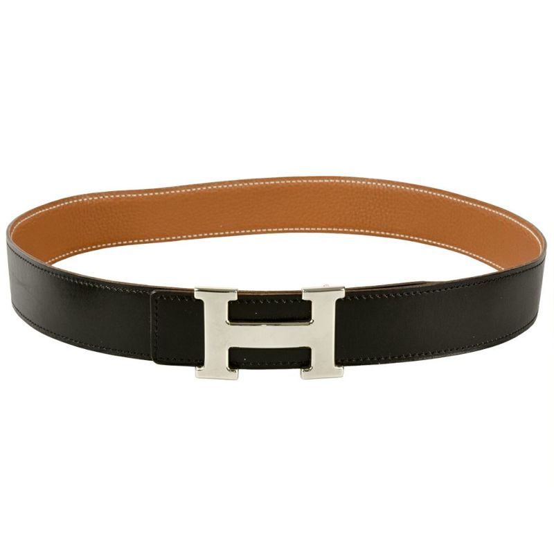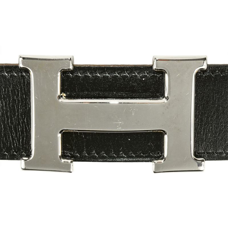 3. エルメス HERMES コンスタンス H リバーシブル ベルト レザー □G(2003年製造)刻印 ブラック シルバー金具 75cm【中古】