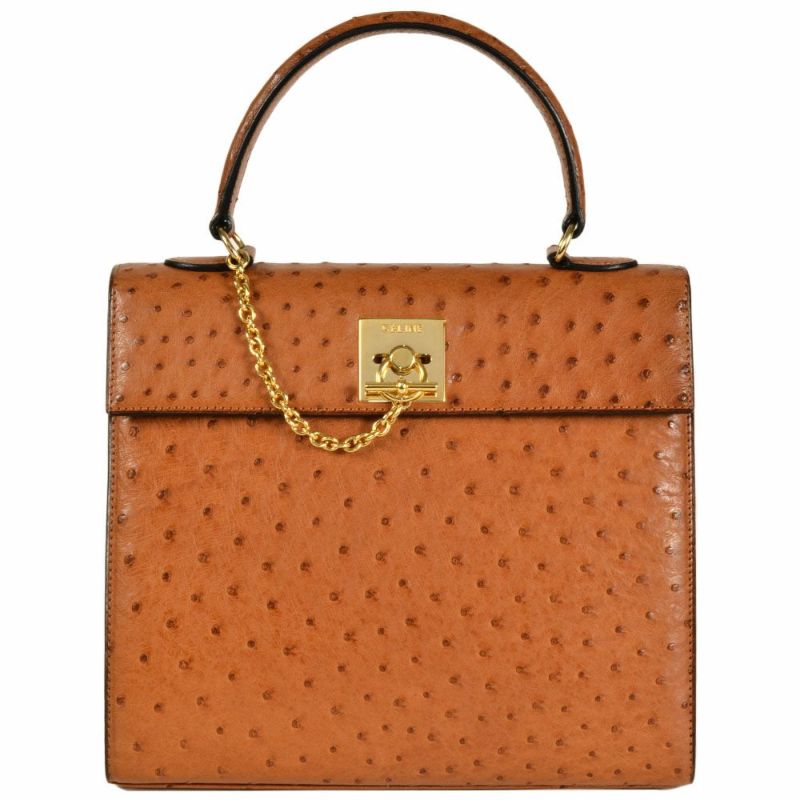 セリーヌ CELINE ヴィンテージ レザー ハンドバッグ オーストリッチ ブラウン ゴールド金具【中古】