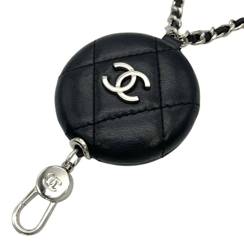 5. シャネル CHANEL ココマーク マトラッセ チェーンショルダー付 カードケース ラムスキン ブラック シルバー金具 レディース【中古】