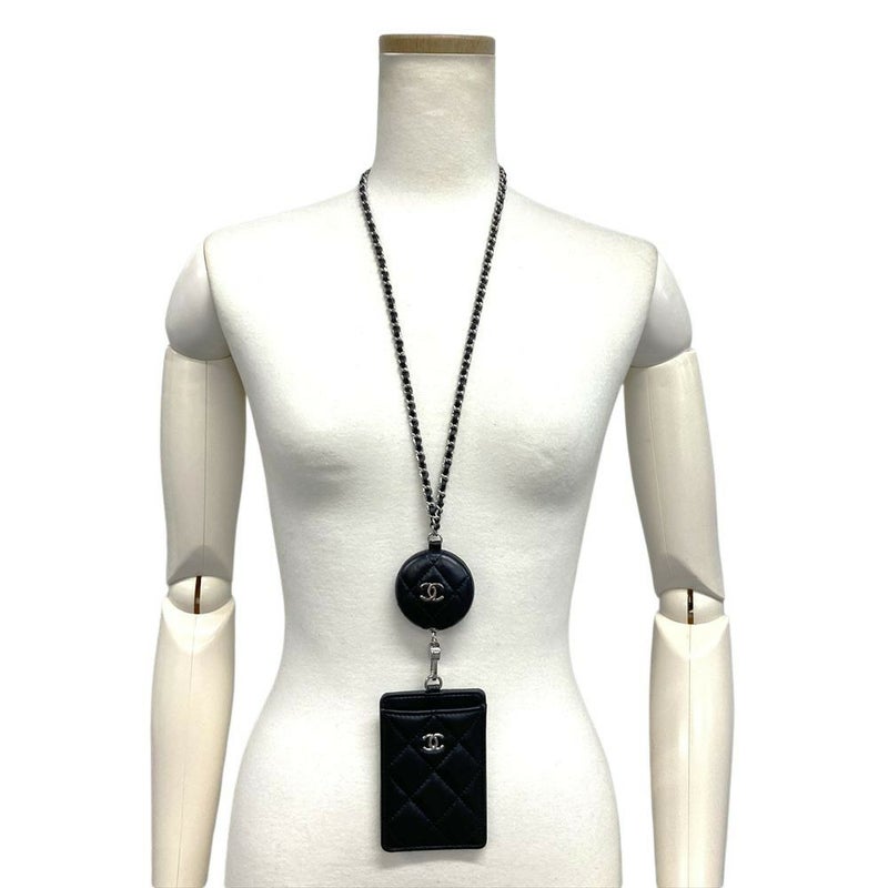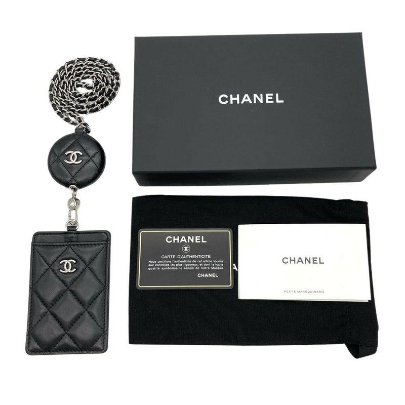 シャネル CHANEL ココマーク マトラッセ チェーンショルダー付 カードケース ラムスキン ブラック シルバー金具 レディース【中古】