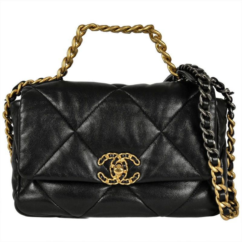 3. シャネル CHANEL 19 ショルダーバッグ ラムスキン AS1160 ブラック ゴールド金具 ランダムプレート【中古】