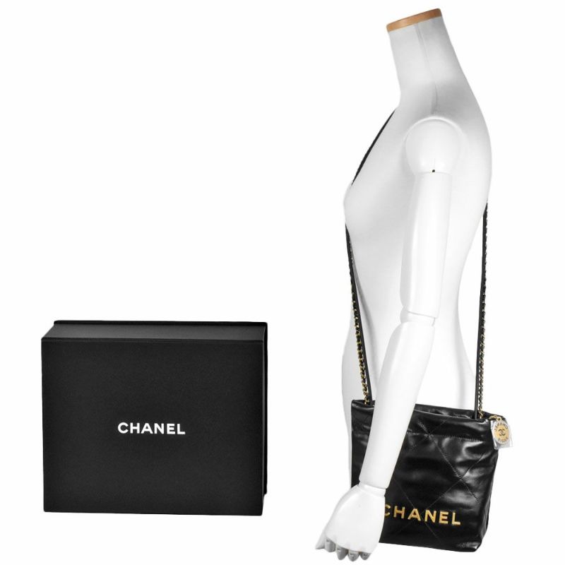 5. シャネル CHANEL 22 ミニ ハンドバッグ チェーン ショルダーバッグ ゴールド金具 ブラック カーフ AS3980 ホーボーバッグ【中古】