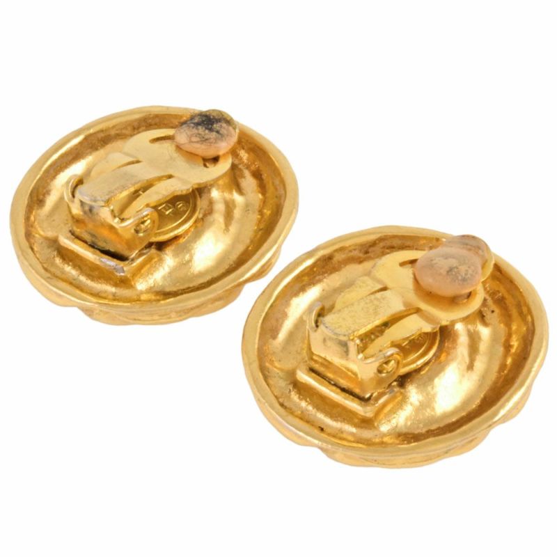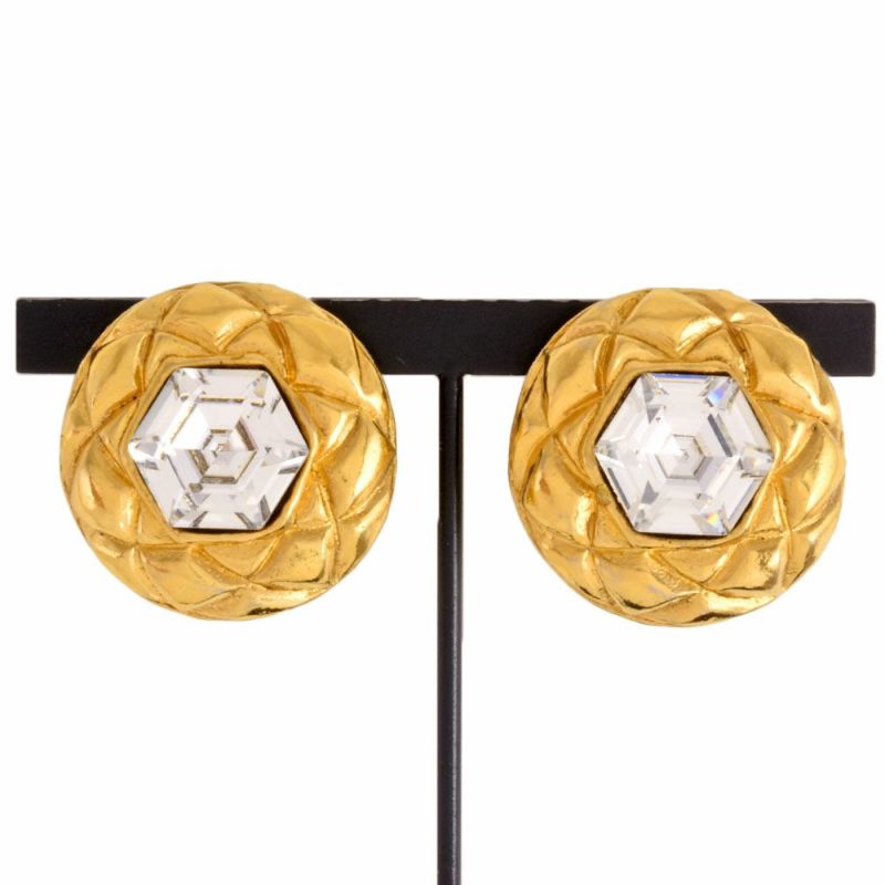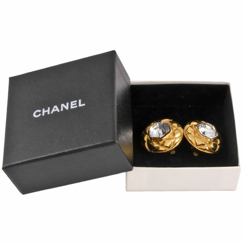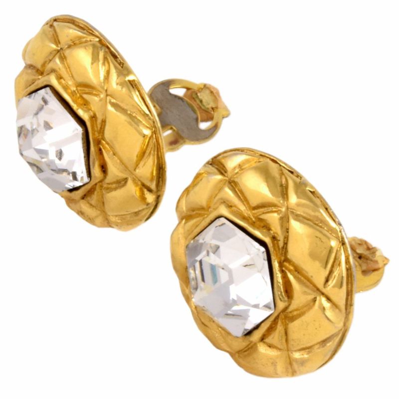 5. シャネル CHANEL ラインストーン ラウンド イヤリング GP クリアストーン ヴィンテージ レディース サークル【中古】