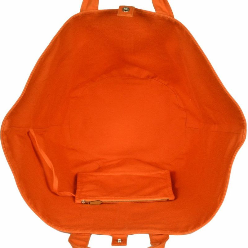 3. エルメス HERMES パニエドプラージュ GM ハンドバッグ キャンバス オレンジ トートバッグ レディース【中古】