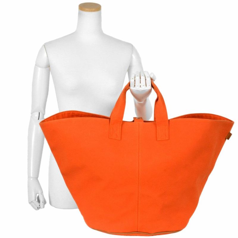 4. エルメス HERMES パニエドプラージュ GM ハンドバッグ キャンバス オレンジ トートバッグ レディース【中古】