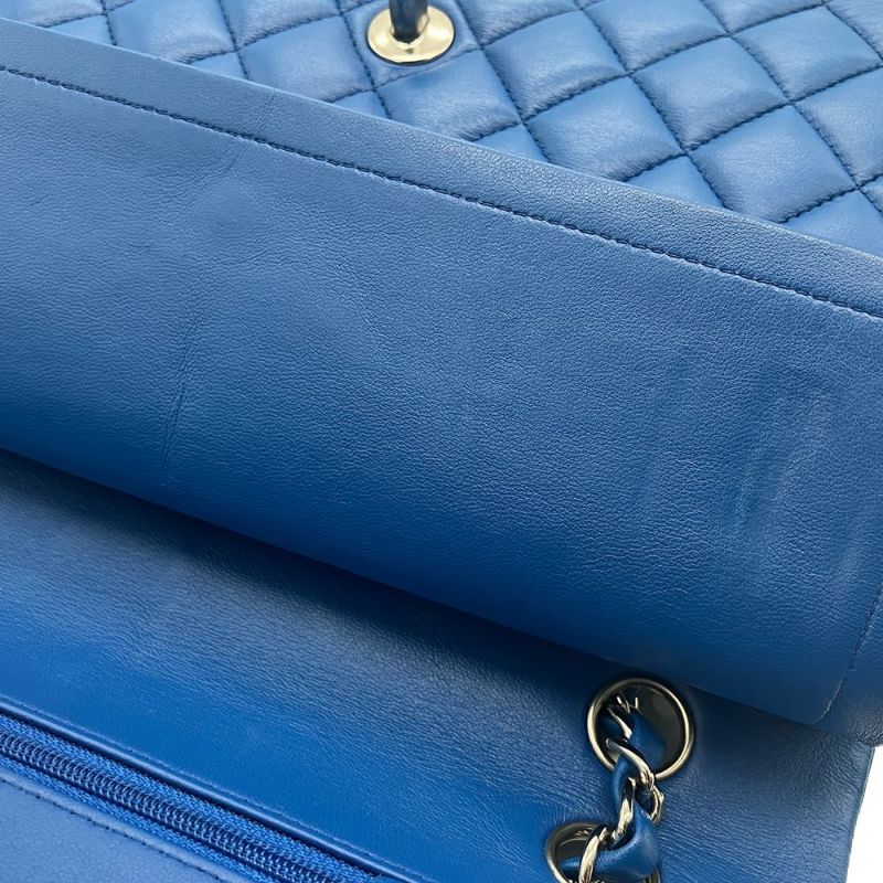 3. シャネル CHANEL マトラッセ25 Wフラップ Wチェーン ショルダーバッグ ラムスキン A01112 ブルー シルバー金具 レディース【中古】