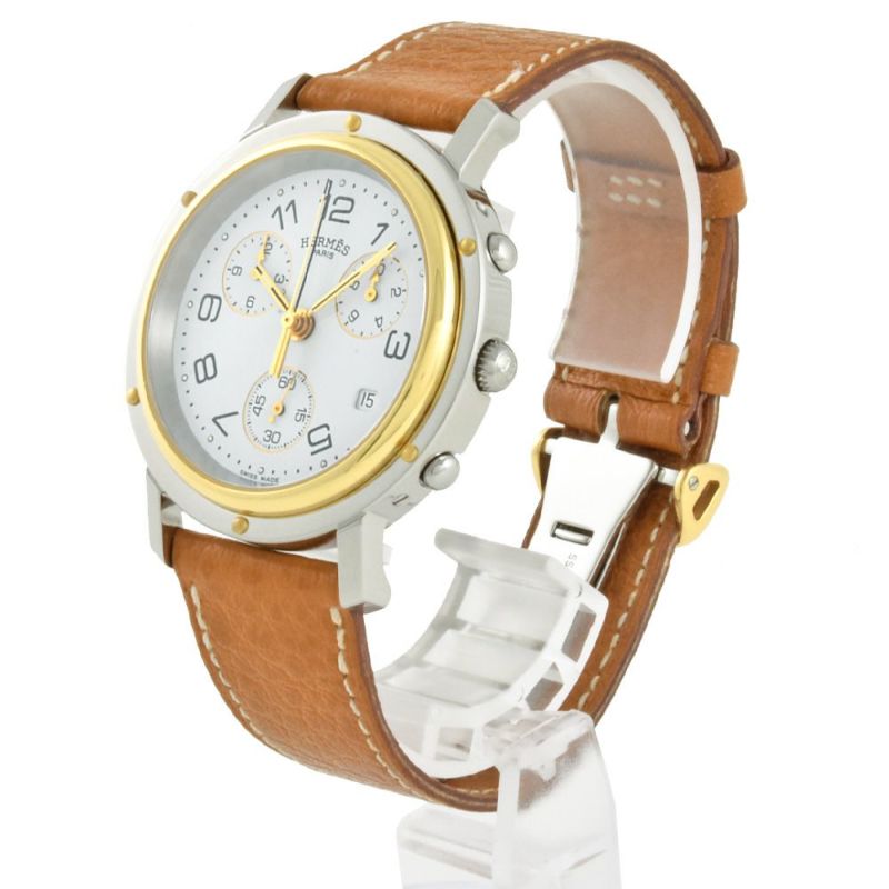 3. エルメス HERMES CL1.920 クリッパー クロノグラフ 腕時計 ホワイト文字盤 メンズ【中古】