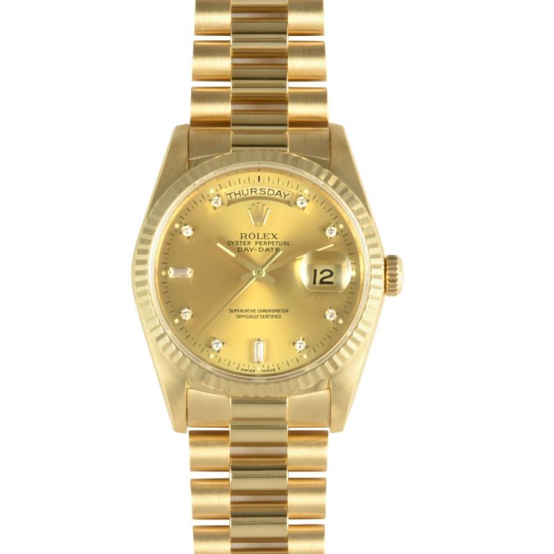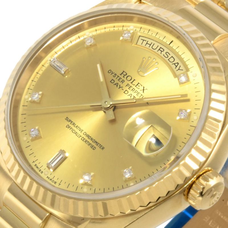 - ロレックス ROLEX 18238A デイデイト L番(1989年頃製造) 腕時計 シャンパン文字盤 K18YG 金無垢 10Pダイヤ メンズ【中古】