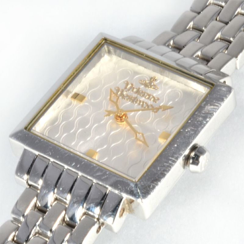 5. ヴィヴィアンウエストウッド Vivienne Westwood VV087 スクエアウォッチ 腕時計 シルバー文字盤 オーブ ロゴ レディース【中古】