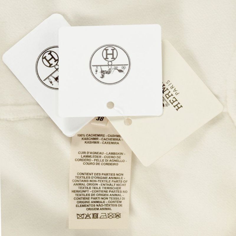 4. エルメス HERMES ダブルフェイス コート カシミヤ レザー ホワイト レディース【中古】