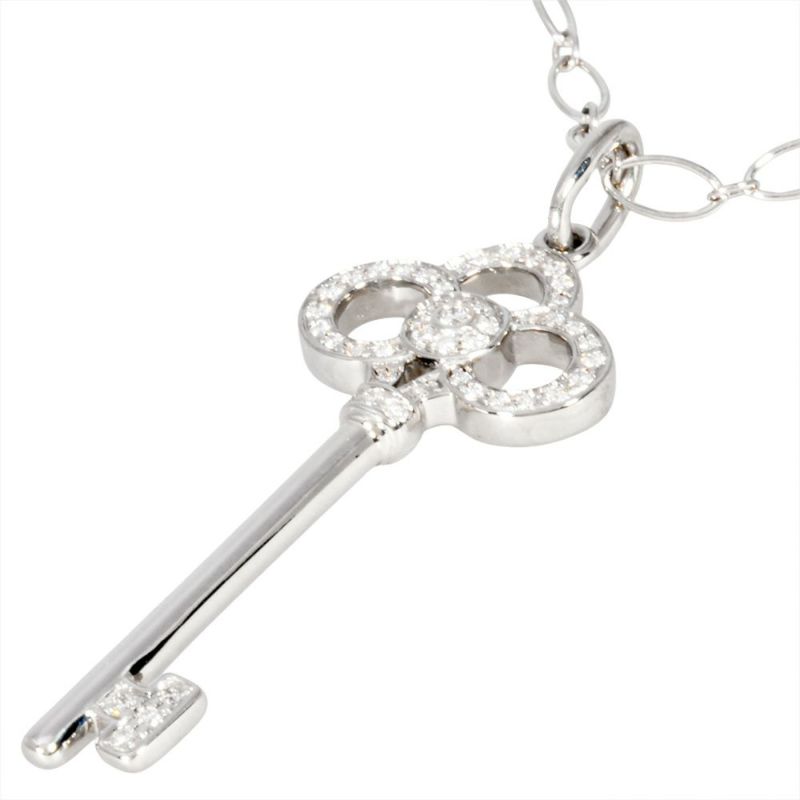 4. ティファニー Tiffany&Co. クラウンキー ネックレス ダイヤモンド K18WG 6.4g ホワイトゴールド レディース【中古】