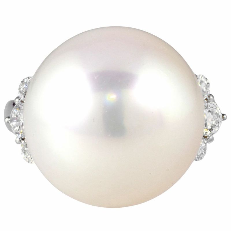 パール 15.9mm リング 指輪 ダイヤモンド 0.51ct 約15号 Pt900 12.0g 白蝶真珠 プラチナ レディース【中古】