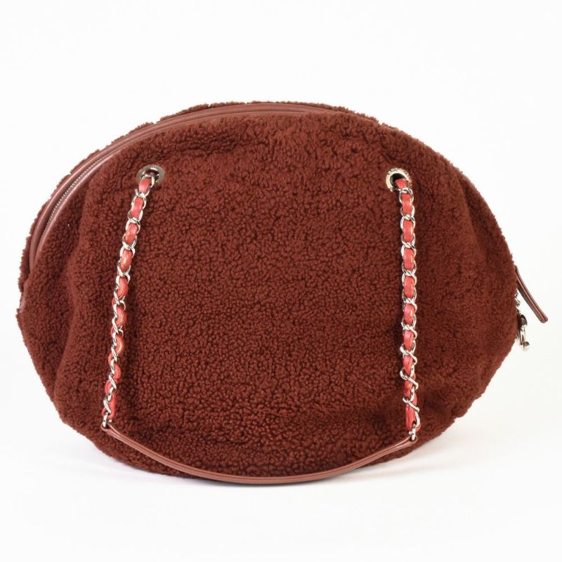 3. シャネル CHANEL ココマーク ドーヴィル ラウンド チェーン ショルダーバッグ ムートン ブラウン シルバー金具 シアリング【中古】