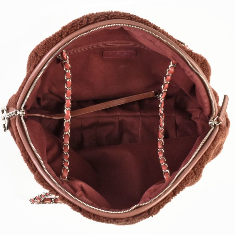 5. シャネル CHANEL ココマーク ドーヴィル ラウンド チェーン ショルダーバッグ ムートン ブラウン シルバー金具 シアリング【中古】