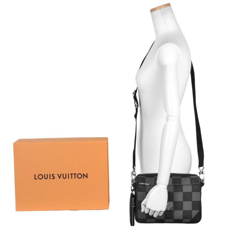 3. ルイヴィトン LOUIS VUITTON トリオ・メッセンジャー ショルダーバッグ N80401 ブラック RFID(ICチップ)内蔵 グレー【中古】