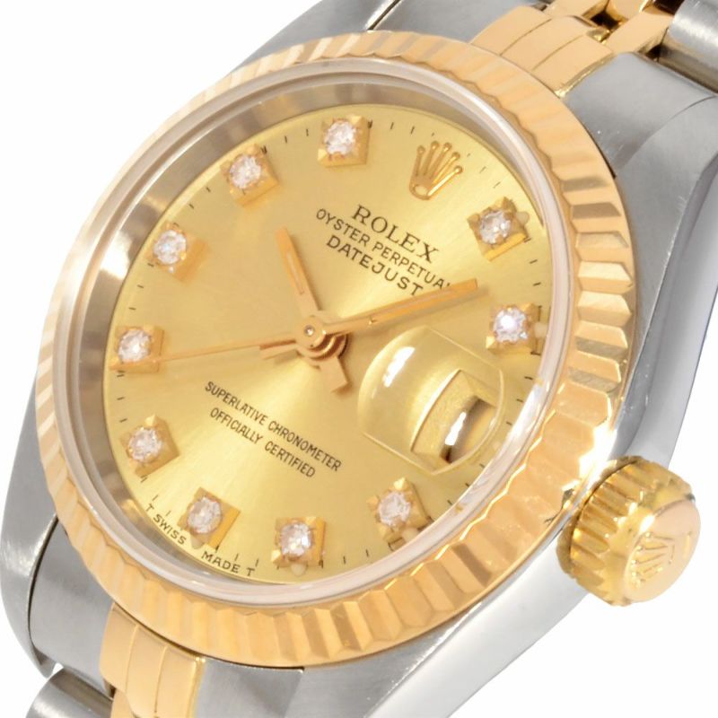 - ロレックス ROLEX 69173G デイトジャスト X番 腕時計 シャンパン文字盤 10P ダイヤインデックス コンビ YG×SS レディース【中古】
