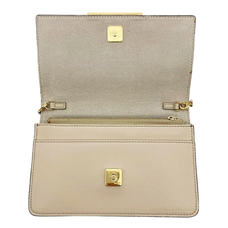 フェンディ FENDI マルチスタッズ チェーンウォレット ショルダーバッグ レザー 8M0346 ベージュ ゴールド金具 189-0189 レディース【中古】