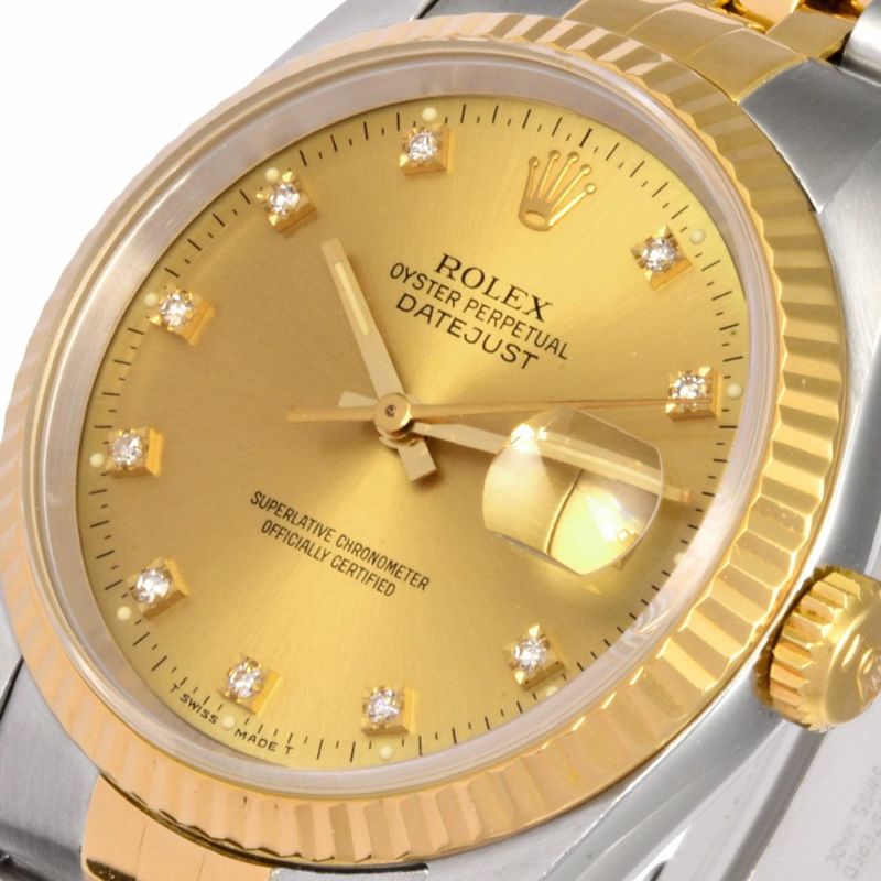- ロレックス ROLEX 16233G デイトジャスト C番 腕時計 シャンパン文字盤 10P ダイヤインデックス SS×YG メンズ【中古】