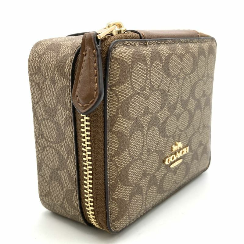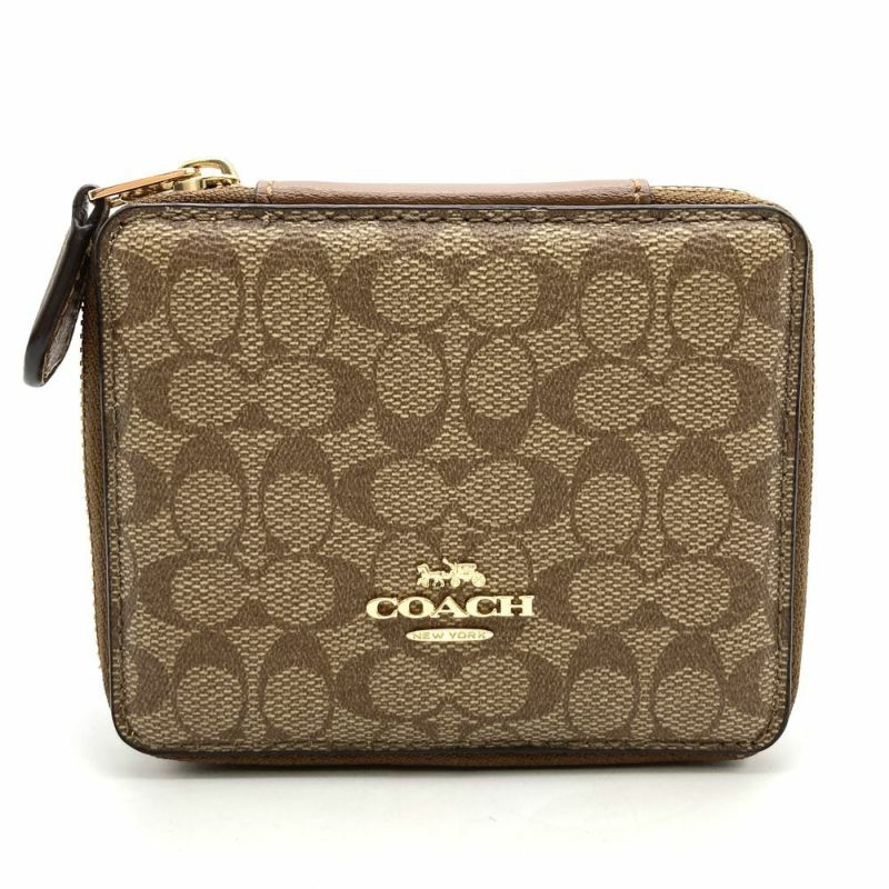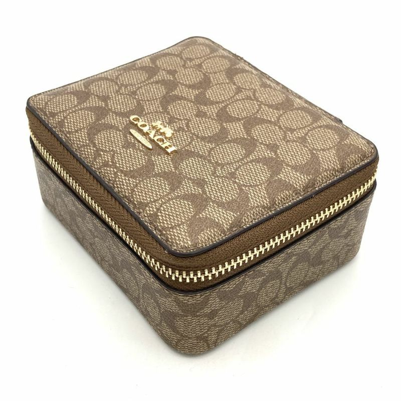 4. コーチ COACH シグネチャー ジュエリーケース アクセサリーポーチ PVCコーティングキャンバス CF825【中古】