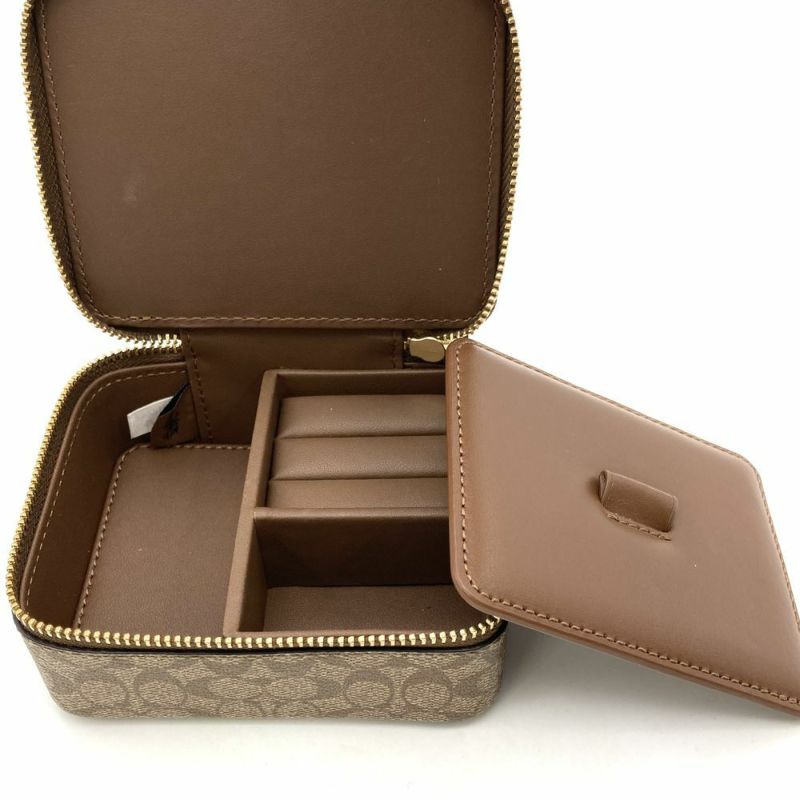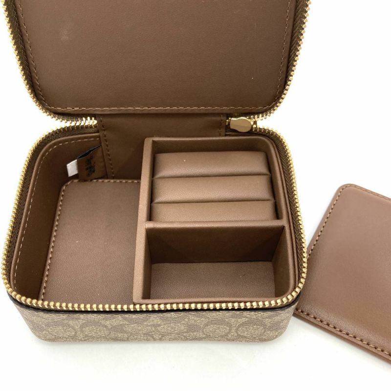 5. コーチ COACH シグネチャー ジュエリーケース アクセサリーポーチ PVCコーティングキャンバス CF825【中古】
