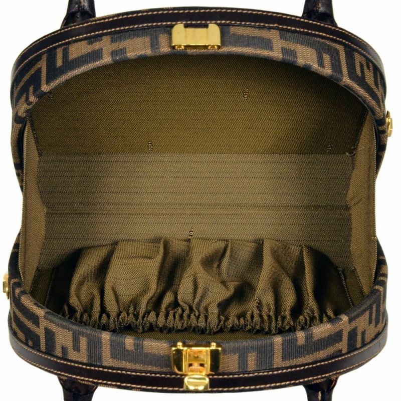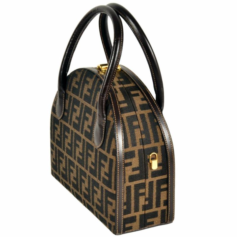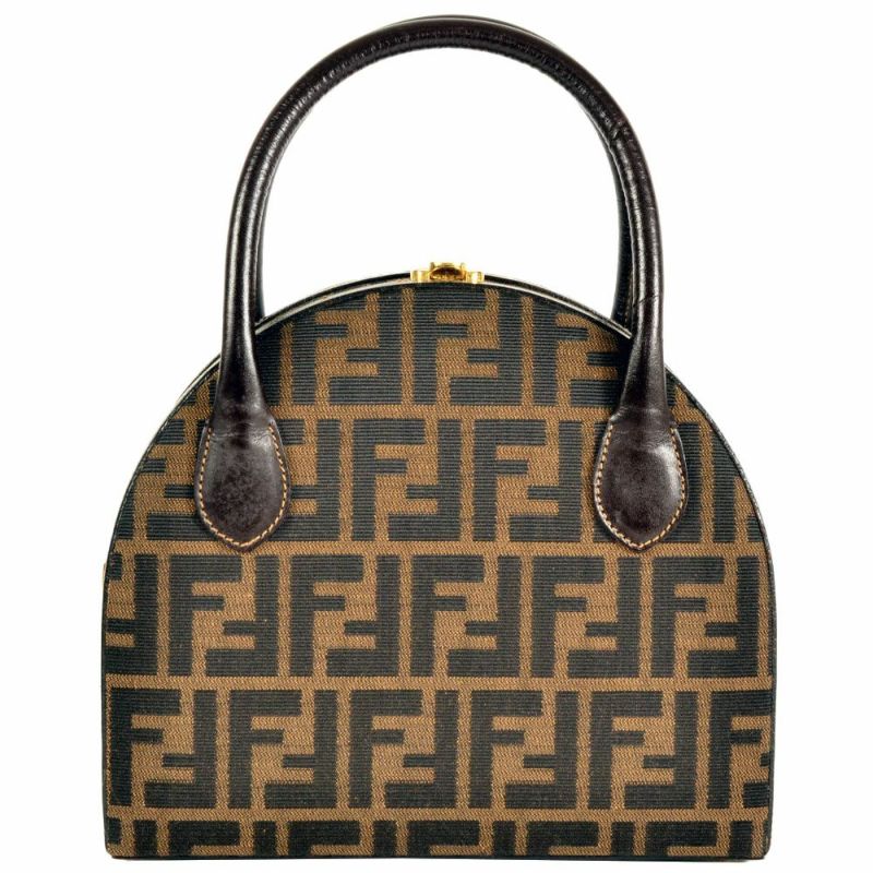 3. フェンディ FENDI ズッカ柄 ラウンドバニティ ハンドバッグ ブラウン【中古】