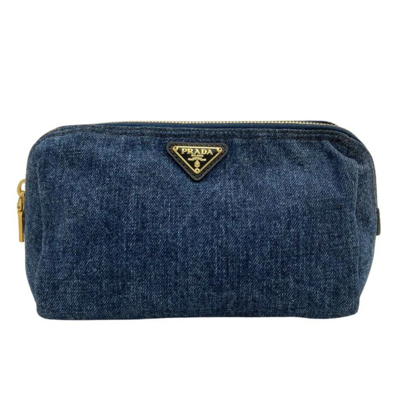 プラダ PRADA ポーチ デニム 1N0693 ネイビー トライアングルロゴ【中古】