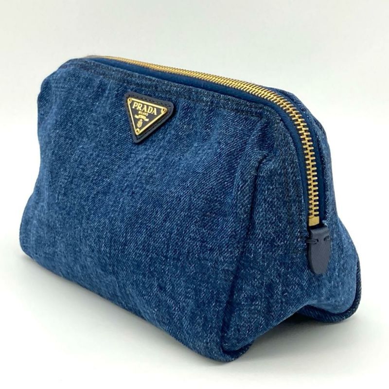 4. プラダ PRADA ポーチ デニム 1N0693 ネイビー トライアングルロゴ【中古】